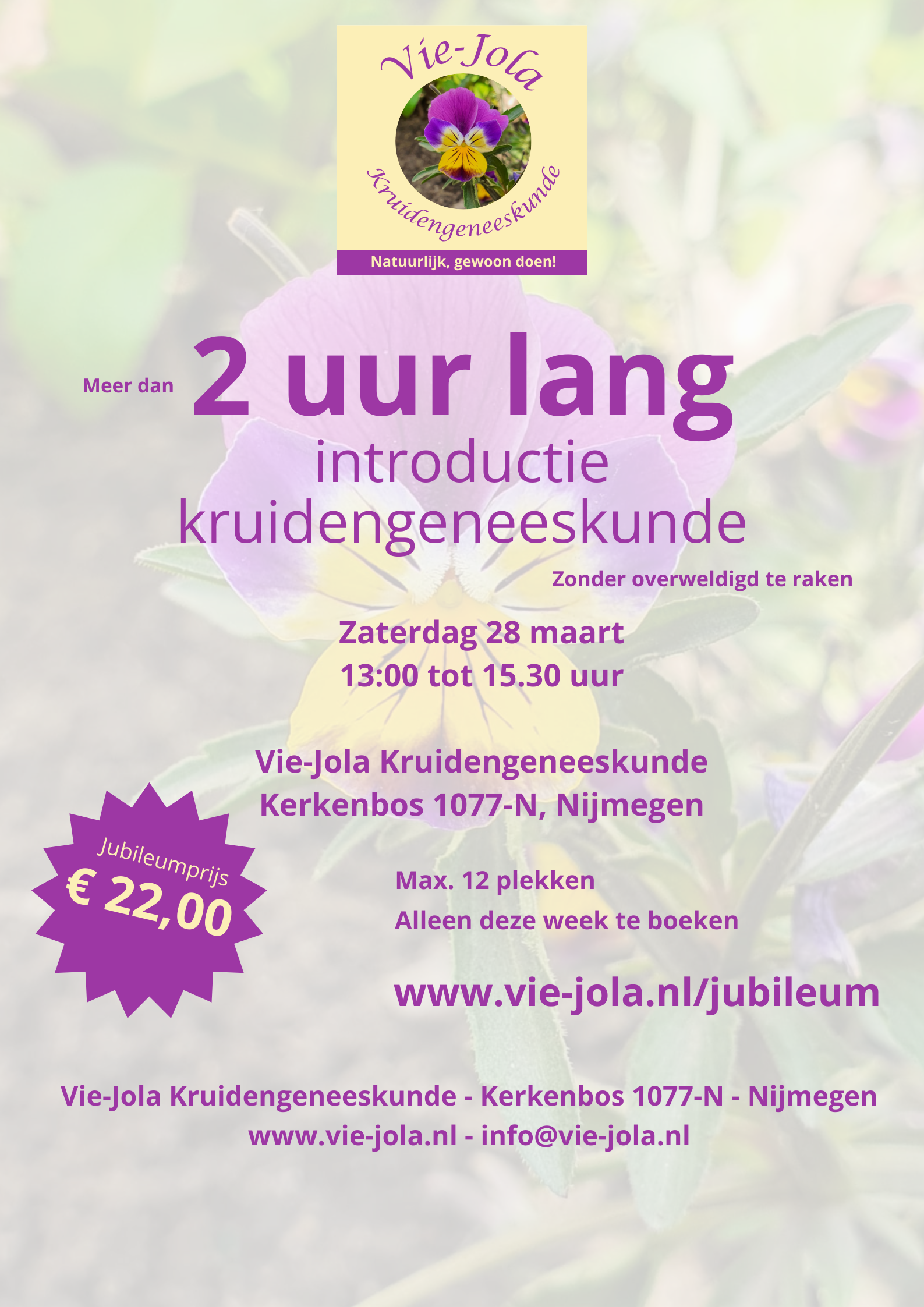 Vie-Jola Kruidengeneeskunde bestaat 2 jaar en daarom geef ik deze éénmalige introductiecursus,